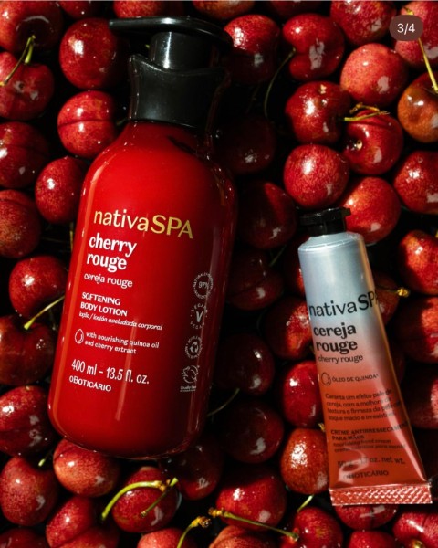 Une crème onctueuse et luxueuse, créée par O Boticário pour envelopper la peau d’une douceur satinée et d’une fragrance fruitée envoûtante. Sa formule enrichie en extrait de cerise antioxydant et en huile de quinoa purifiée hydrate intensément pendant 48 heures, tout en laissant un film protecteur qui prévient le dessèchement cutané. La signature olfactive de cerise rouge procure une sensation de bien-être prolongée.